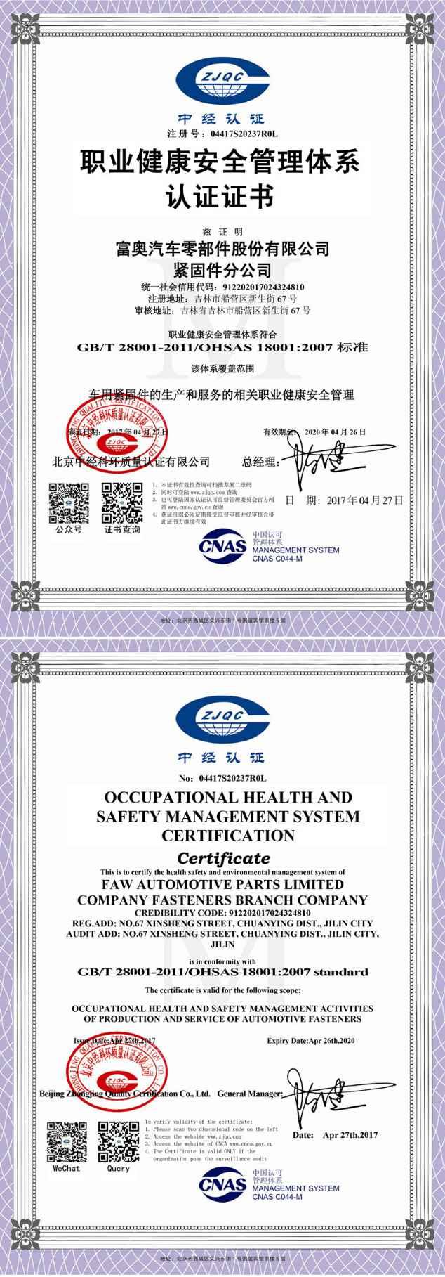 2017职业健康安全证书
